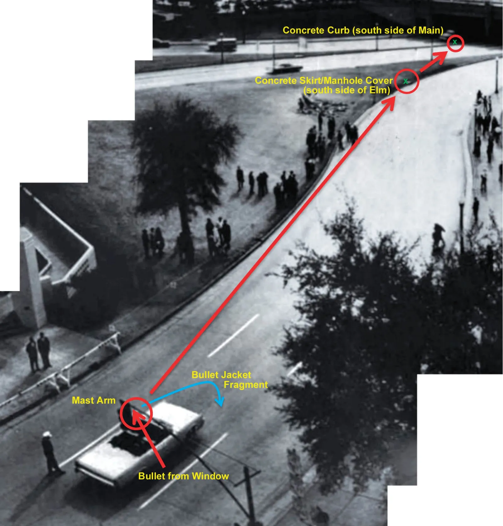 A 3D plaza model wired to Project Conspiracy report dossiers. Start with the eight native map markers, then use the panel to move between official, forensic, acoustic, and intelligence-context reports.